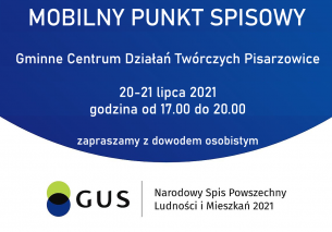 Mobilny punkt spisowy w Pisarzowicach pon., 2021-07-19 13:05 | Tomasz Smolarski Zapraszamy do spisania się w mobilnym punkcie spisowym w Pisarzowicach !